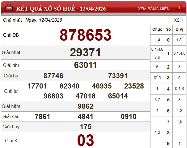 Kết quả xổ số Thừa Thiên Huế ngày 12/4/2026