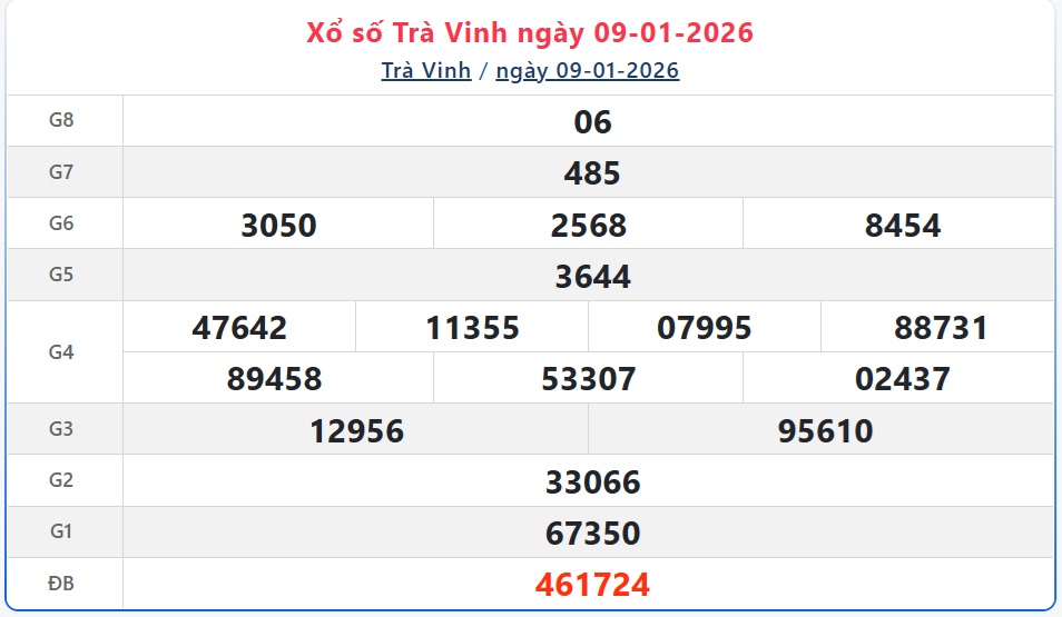 Theo dõi kết quả xổ số Trà Vinh hôm nay 16/1/2026 nhanh chóng và chính xác nhất để không bỏ lỡ thời gian nhận thưởng.
