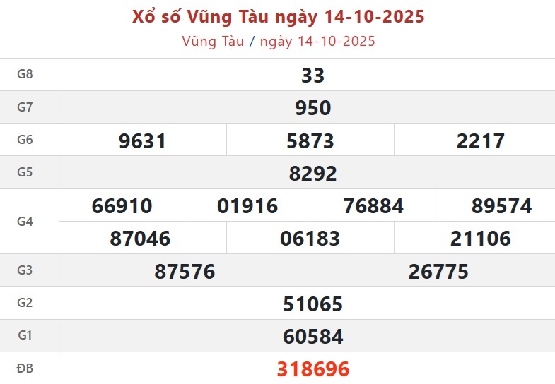 Theo dõi kết quả xổ số Vũng Tàu hôm nay 14/10/2025 nhanh chóng và chính xác nhất để không bỏ lỡ thời gian nhận thưởng.