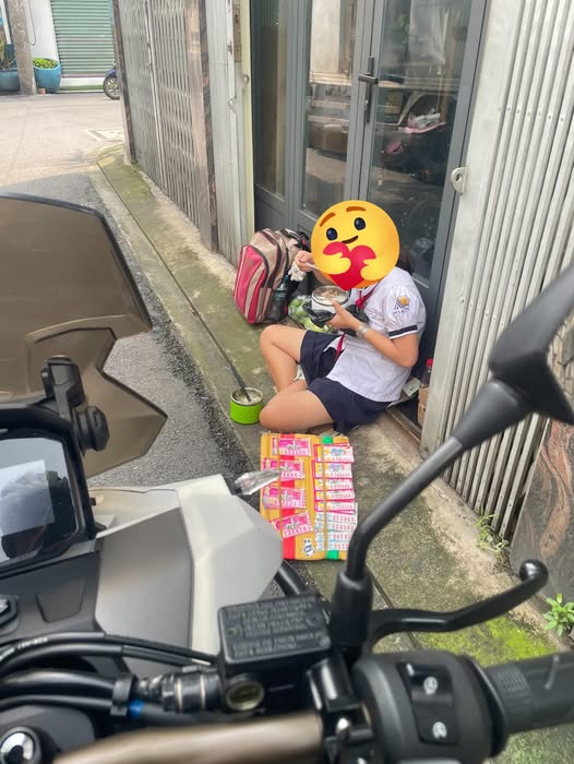 Trưa nay, trên mạng xã hội lan truyền bức ảnh chụp tại ngã ba Hiệp Nhất – Tự Lập (quận Tân Bình, TP.HCM). Trong ảnh, một bé gái tầm 13–14 tuổi, mặc đồng phục học sinh, ngồi bên vỉa hè trước cửa nhà, trước mặt là mấy tờ vé số và hộp cơm đơn giản.